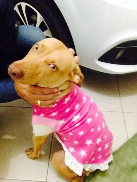 Olá, minha amiga protetora, recolheu essa cachorra linda de olhos verdes e dourada na rua. Ela estava no cio e estava toda machucada e muito magra. Depois de fazer um tratamento para ganhar peso, para curar os machucados e depois da castração ela busca um novo Lar...