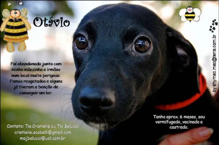 Olá, sou o Otávio, fui abandonado junto com minha mãezinha e irmãos num local muito perigoso. Fomos resgatados e alguns já tiveram a benção de conseguir um lar.
