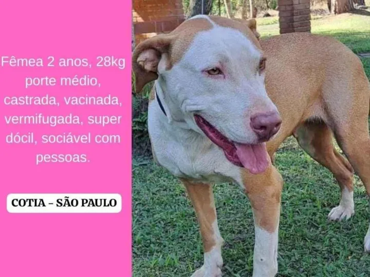 Procurando um novo amigo de quatro patas? Conheça a Pit, uma linda Pit-Bull de 2 anos, com uma pelagem caramelo que vai conquistar seu coração. Pit é uma fêmea de porte grande, mas não se deixe enganar pelo tamanho, pois ela tem um temperamento extremamente dócil e calmo.