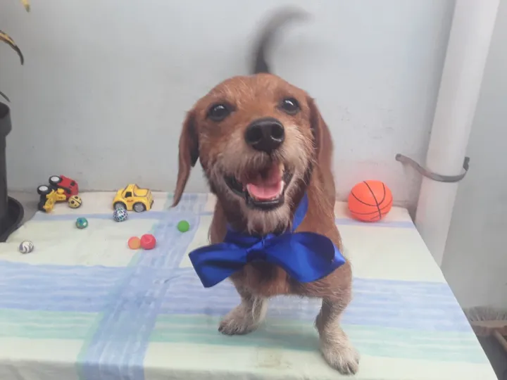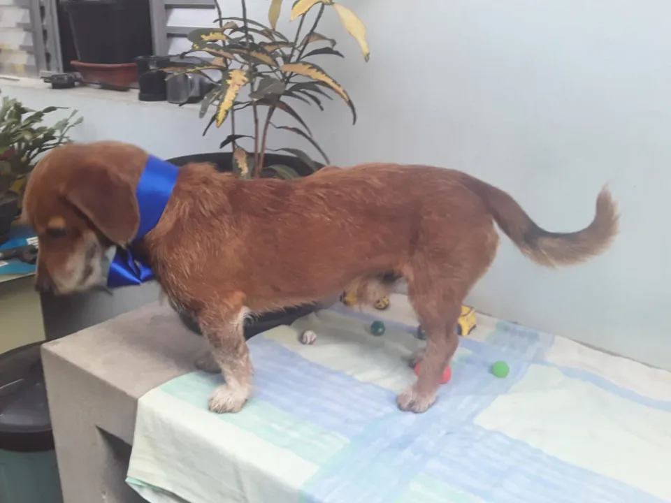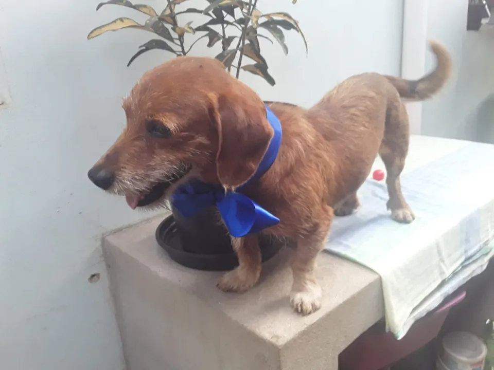 Abandonado no meu bairro. Mestiço a raça Salsicha. Idade aprox. 2 anos. Vermifugado. Muito Dócil, Obediente, Brincalhão, Sociável c outros cães... Sobre gatos não sei, mas acho q sim... Gosta de crianças e companhar a gente o tempo todo... Infelizmente não posso ficar c ele. Tenho mais cães em um pequeno espaço.