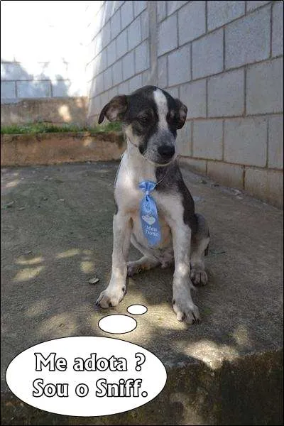 SNIFF é um filhotinho de apenas 3 meses. Já é castrado, vacinado e vermífugado. Um garotinho cheio de vida, cheio de charme e muito lindo. Esta em busca de uma família que o adote, que o trate como membro, com muito amor, respeito, carinho e paciência. Resgatado abandonado com sua mãezinha e seus irmãozinhos em uma obra da região de Osasco, Sniff era tão pequenino que não abria os olhinhos. Hoje com muita saúde e disposição, pesa 6 kg. Uma verdadeiro anjo fofo. ADOTE SNIFF!