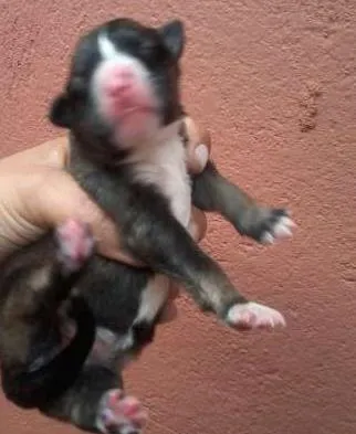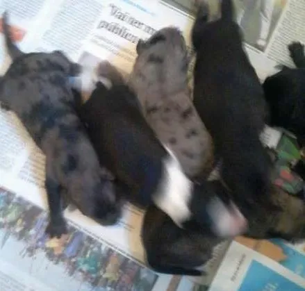 Teresa foi abandonada por sua antiga familia prenha. A recolhemos e 10 dias depois ela pariu 6 filhotes.