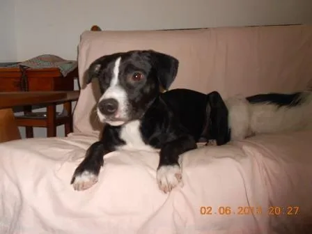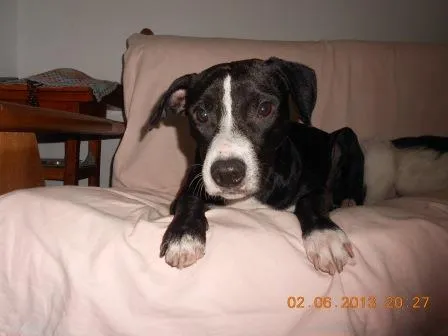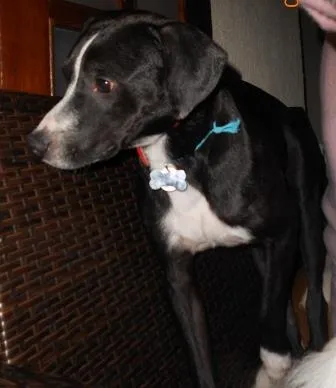 Adote Ziá, um lindo cachorro preto com detalhes brancos, 2 anos, vermifugado, vacinado e castração agendada. Brincalhão e amoroso, ele é perfeito para você!