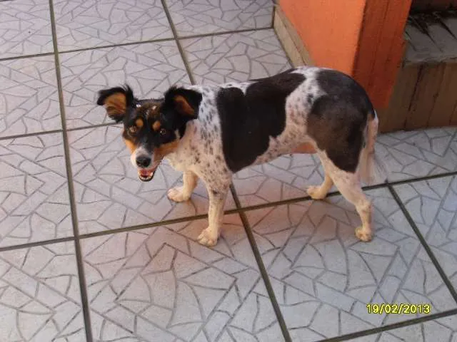 Cadela encontrada 26/01/2013 no anel viário em Guarulhos, próximo ao macdonalds. Não tinha sinais de maus tratos ou ferimentos. Estava bastante assustada pois quase foi atropelada. Muito dócil, carinhosa, ativa, brincalhona. Não sei se fugiu ou foi abandonada. Tirei foto e espalhei em vários lugares. Cadastrei em vários sites e até agora o dono não apareceu.