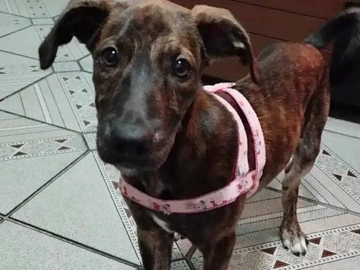 Encontramos esta cachorrinha na rua após uma adoção irresponsável, ela é bem bebê (5 meses), muito brincalhona, castrada, adora estar com pessoas, muito companheira. Ela está em um lar temporário e precisa urgente de uma família que dê o amor que ela merece. Estamos em Guarulhos/SP
