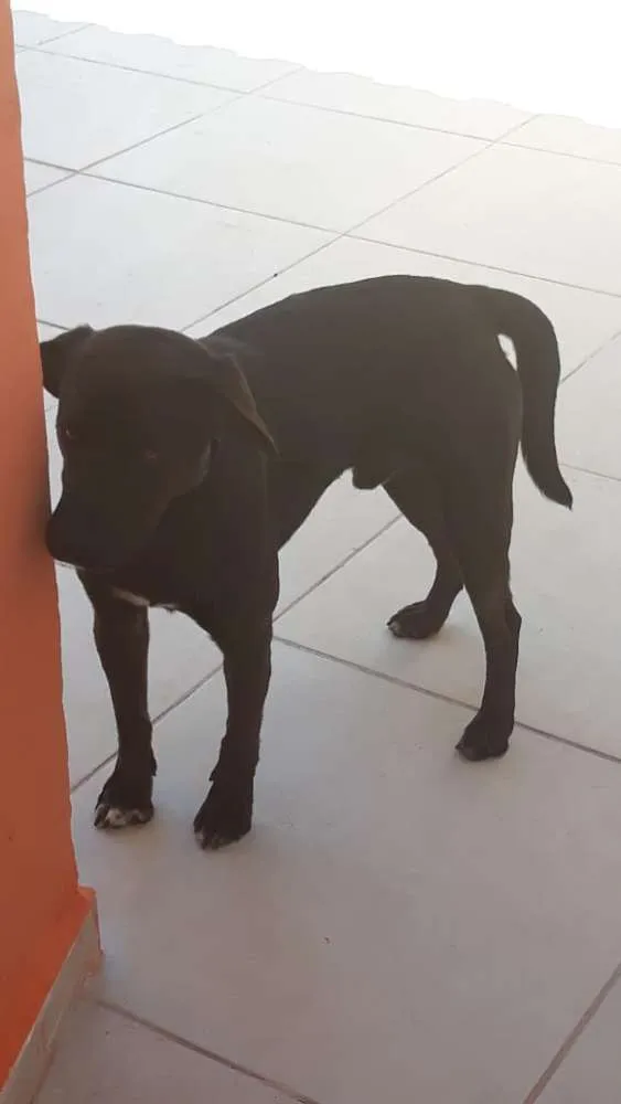 Esse cãozinho apareceu na porta de casa, bem cuidado, aparentemente fugiu ou se perdeu pois estava levando uma corrente. Temperamento bravo se trata de um cão de guarda.