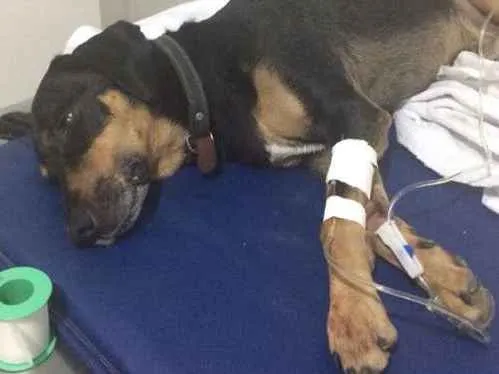 O cãozinho esta na Clinica Veterinária São Francisco 24 Horas : Av Nossa Senhora Mãe dos Homens, 692, 07091-050 - Guarulhos/SP