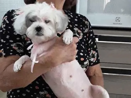 Cachorrinha branca Lhasa Apso,é ceguinha.Ela tem marcas pretas:uma na orelha e outra próximo ao rabinho,e perdemos hoje pela tarde do dia 06/02/2021 .Telefone para contato: 11 24535438