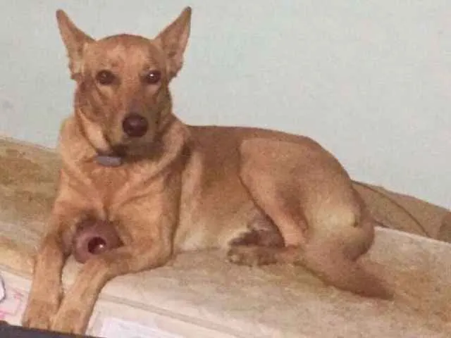 Ele escapou 6ª à noite (10/11) com medo dos trovões e não o vimos mais,ele é dócil, e usa uma coleira vermelha, porte médio, ele tbm tem medo de fogos de artifícios.