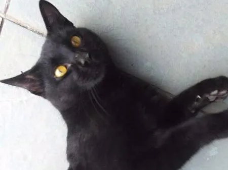 Deve ter por volta de dois anos, possui pelagem preta e lindos olhos amarelos!