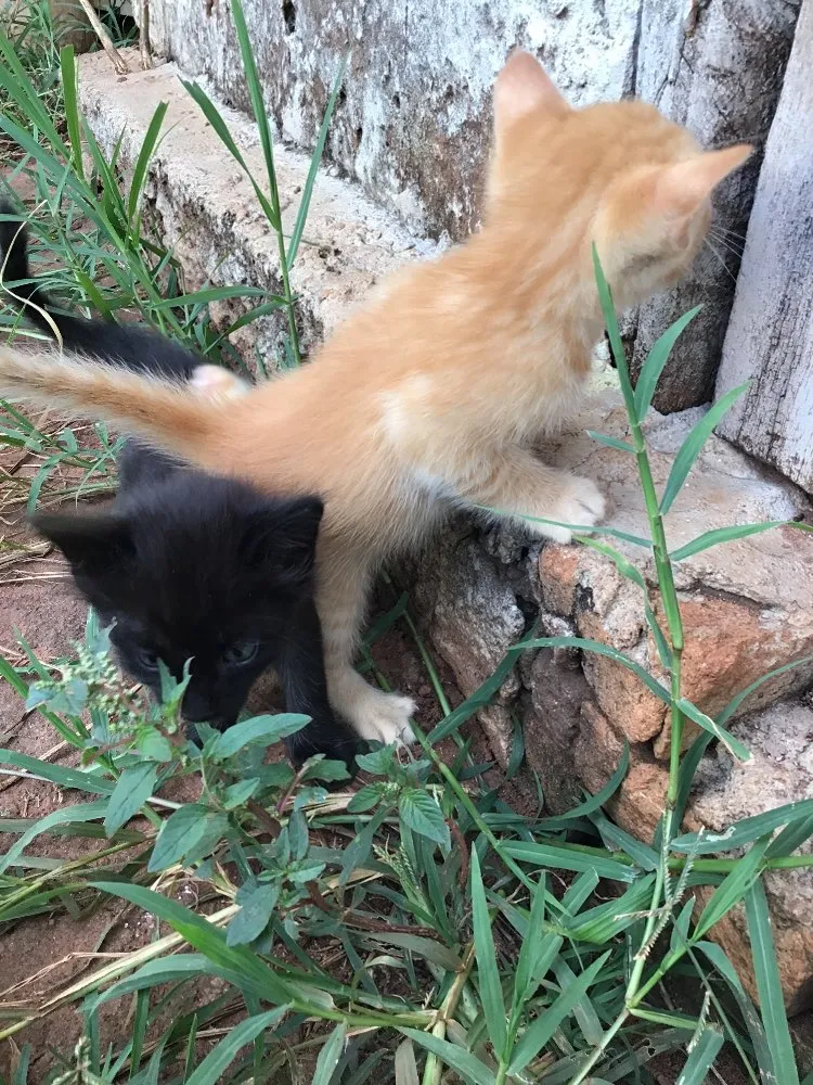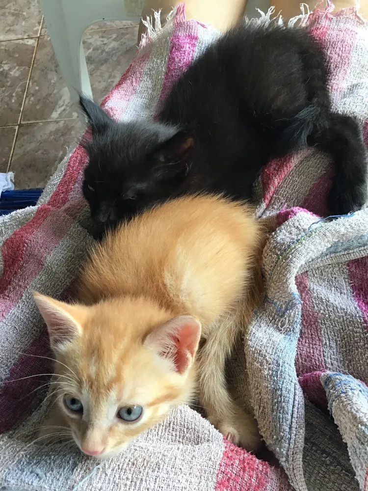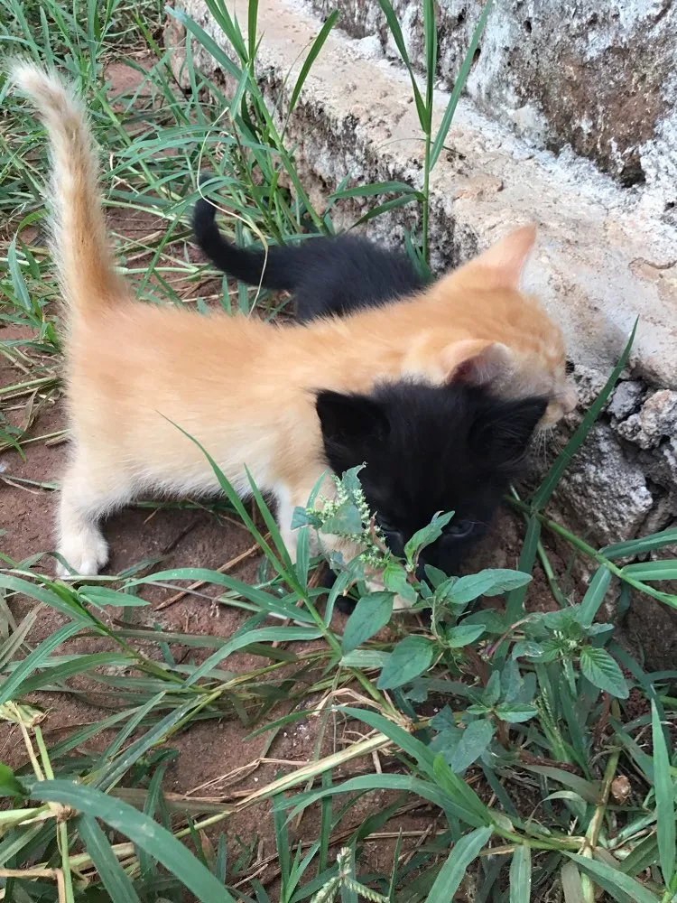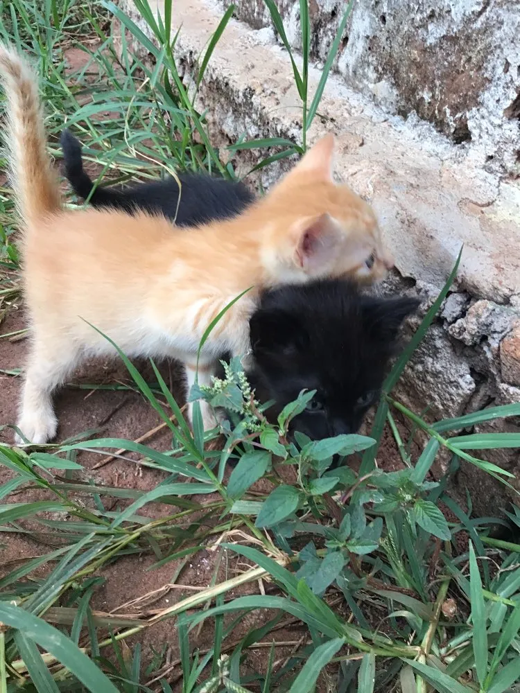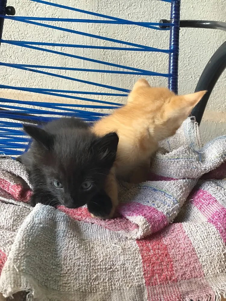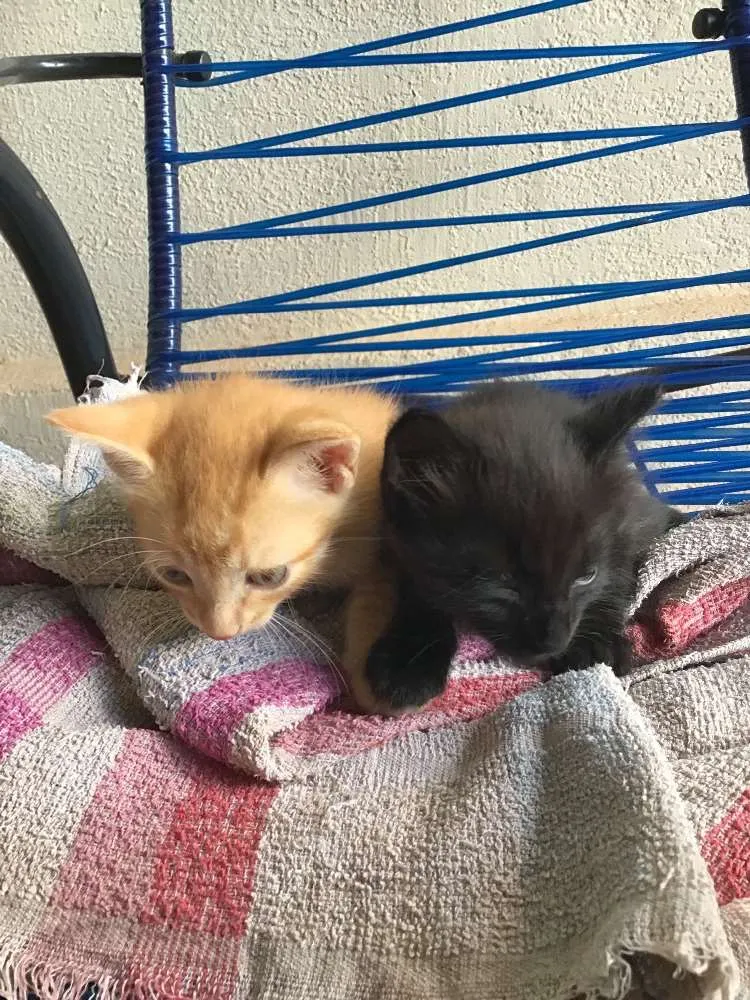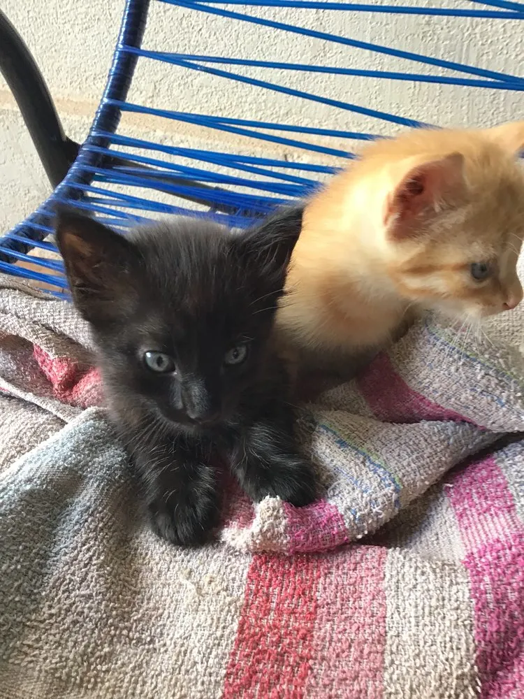 Ante de tudo, estou na cidade de Palmeira d’Oeste, região de Jales, e não em Guarulhos. Houve um erro na postagem e não consigo arrumar. . Esses gatinhos têm mais ou menos 40 dias e estão quase desmamados. Eles começaram a comer alimento sólido, embora ainda estejam mamando. Quando você vier pegar eles, já estarão desmamados. Eles são saudáveis e dóceis. Adoram um colinho e cafuné. Estou doando porque já tenho muitos gatos. Carrapicho é o pretinho. Coloquei esse nome porque quando você pega ele, ele se agarra com as garrinhas igual a um carrapicho. Ele é muito dócil e gosta de ficar bem quietinho no canto dele. A Gigi é a amarelinha rajada. Ela é muito esperta, ativa e inteligente. Ela adora explorar seu redor. Caso queiram mais informações, por favor envie mensagem pelo WhatsApp. Muito obrigada pelo interesse em dar um lar para esses bichinhos.