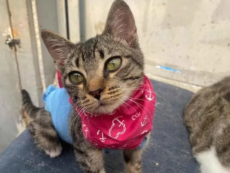 Essa fofura é muito dócil , está castrada , adora brincar , tem aproximadamente 3 meses e está querendo um lar .