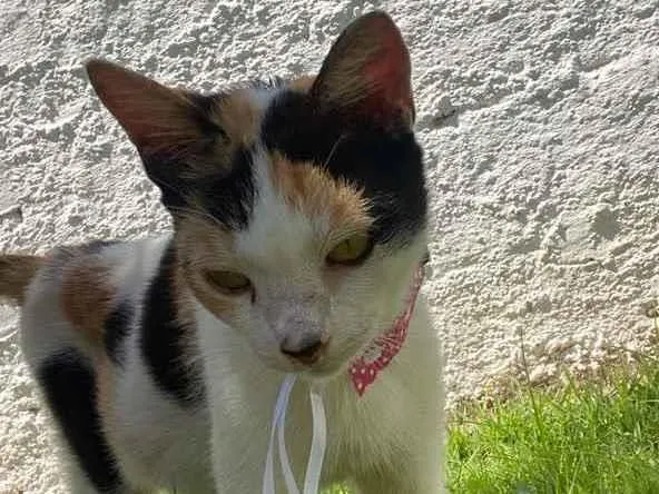 Em torno de 6/7 meses. Gatinha muito dócil, carinhosa e calma. Charlotte foi achada na rua e eu já tenho outros animais e alergia a gato, realmente não posso ficar com ela.