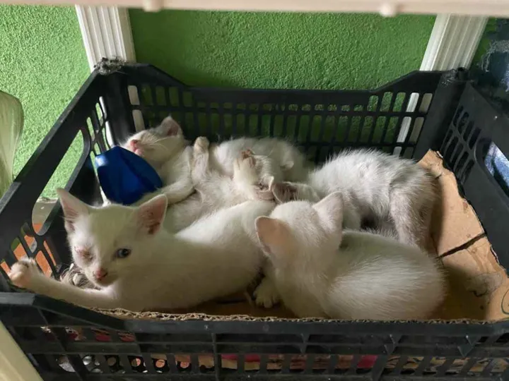 Cinco filhotes que foram abandonados perto da minha casa e infelizmente não consigo ficar com eles. Ainda não sabemos se são macho ou fêmea, são recém nascidos.