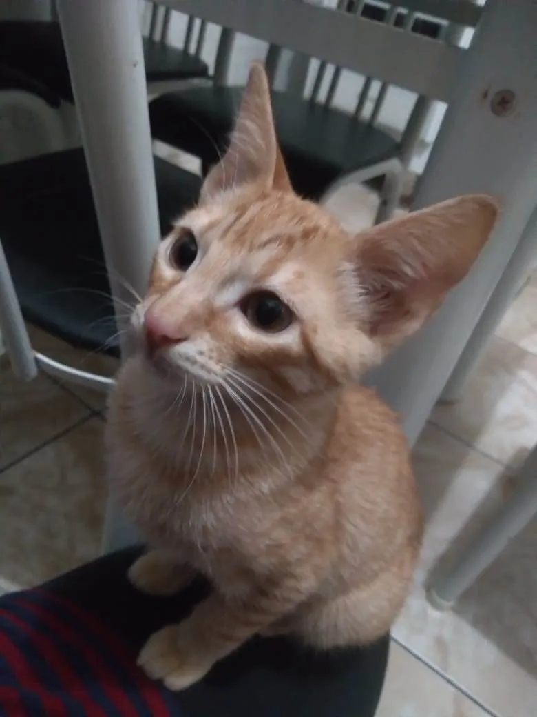 É um gatinho laranja pequeno de 5 meses, foi castrado pela Zoonoses e vacinado contra raiva também, é bem alegre e agitado, mas muito carinhoso, gosta de carinho e dormir no colo.