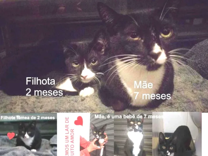 Eu socorri essas duas nenéns(mãe de 7 meses e filha de 2 meses) porque a vizinha fechou o forro do telhado pra elas não entrarem mais e estava chovendo e frio... achei que ia conseguir doar logo... Mas, estou com elas há um tempo... elas estão trancadas em um quartinho minúsculo (porque tenho medo que elas fujam e a minha casa não é gatificada, muito pelo contrário ela é um ovo e também há uma pessoa de cadeira de rodas em casa, vitíma do AVC). Não posso ficar com elas, por que além do ambiente não estar propicio para ter gatos... elas vivem trancadas em um local minúsculo e quero poder dar uma vida digna e feliz a elas, entregando a um dono responsável, que possua uma casa/apartamento seguro para que elas não fugam. Ajude a essas nenéns a terem uma vida feliz! Entre em contato com via WhatsApp: 11 99453-1642 - Vilma