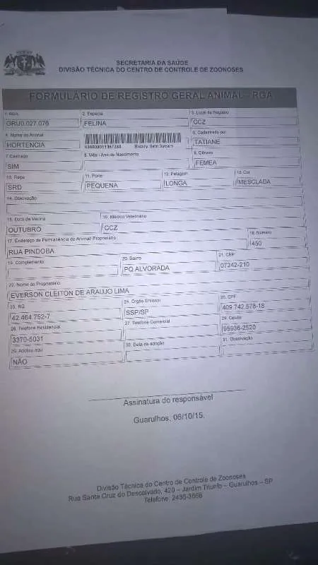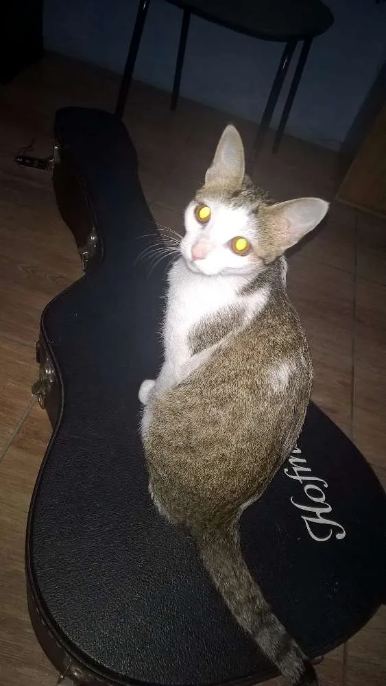 uma gata dócil e não é nem um pouco tímida com estranhos e muito menos gosta de dormi sozinha tem medo de carros, não é acostumada a sair na rua, faz uns 3 mês que foi castrada. darei uma gaiola de transporte para quem adota-la