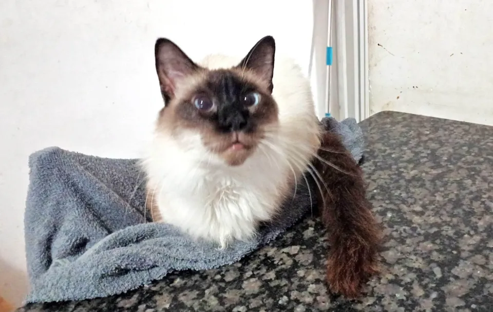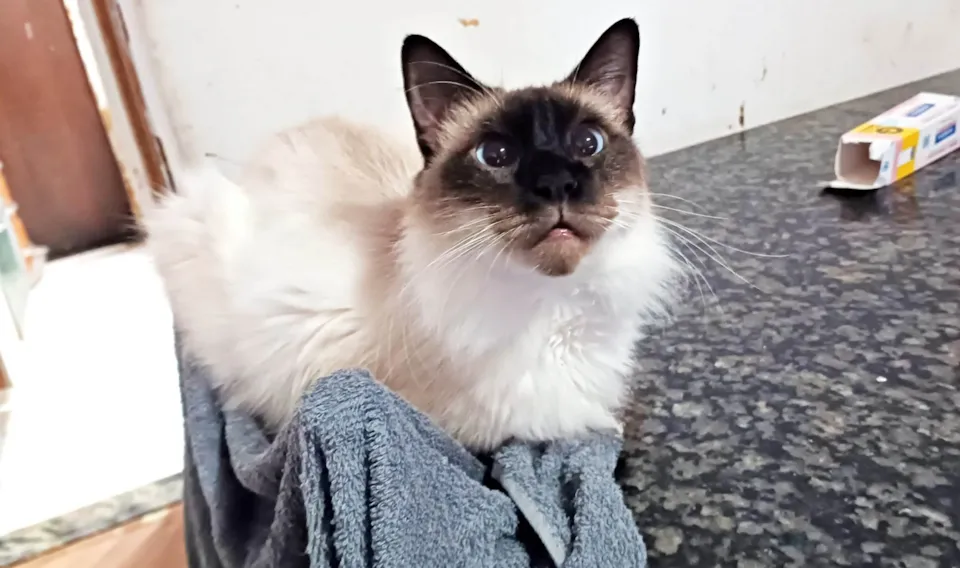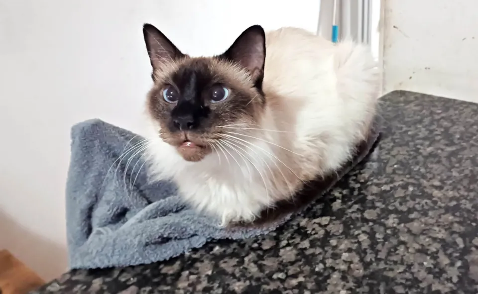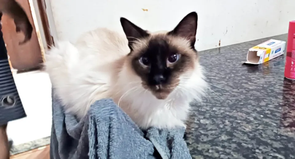 Esse mocinho estava com uma pessoa que não tem condições de ficar com seus gatos e queria doar o mais rápido possível, ou iam colocar na rua, então o abrigamos temporariamente.