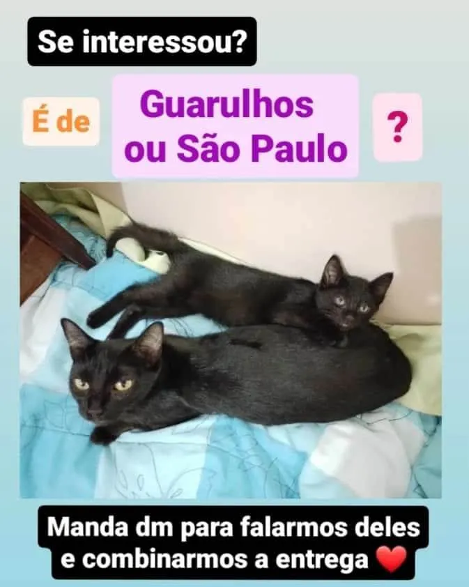 Resgatamos a Mamacita junto do seu único filhote e queremos doá-los juntinhos. Ela é muito carinhosa e é mais calminha, ele é um gatinho esperto que gosta de brincar, seja com pessoas, com a mamãe dele ou outros gatos :)