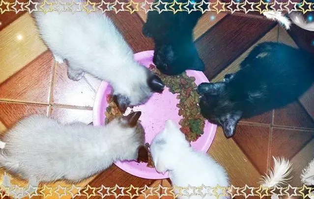 são gatinhos bebes ainda,mas já comem ração pra filhotes,mestiços ciames,gostaria que quem adotar que goste do animal e não pra adota pra pega ratos,porque já recebi ligações de pessoas querendo um gato pra caça ratos,quero que alquem adote porque realmente ame os animais com cuidados com a saude e etc,pense bem antes de adota,porque ele vai fazer parte da sua familia....adote com consiencia.obrigada