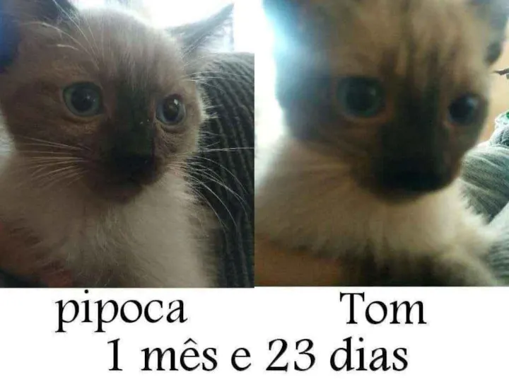 O Tom e o Pipoca são dois irmãozinhos lindos, fofos e brincalhões a procura de um lar responsável e cheio de amor, não precisa ser adoção conjunta, apesar de que seria ótimo crescerem juntos brincando e se divertindo. Esses menininhos vivem com a Maria uma mulher muito bondosa porém humilde, que abriga vários gatinhos e que não tem como levá-los até o adotante, será preciso entrar em contato e combinar de ir buscá-los!!