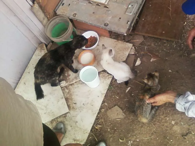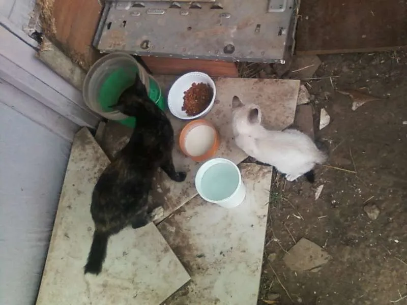 Essas duas gatinhas de por volta de um mês e meio foram abandonadas com a mãe perto de casa (Guarulhos-sp) em um trailer, estou alimentando-as lá, porque NÃO CONSIGO TRAZER PRA CASA, moro em condomínio, já tenho 6 gatos e dois deles se machucam de ciúmes quando trago mais gatos.