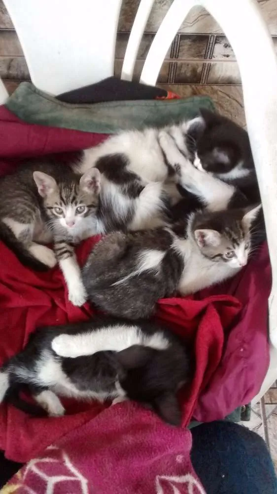 Detalhe ela já tem 2 gatas. Desta forma levamos ao veterinário para dar vitaminas e acompanhamos o desenvolvimento dos pequenos que hoje já desmamou e tem um mês. Temos 3 machos e 2 fêmeas.