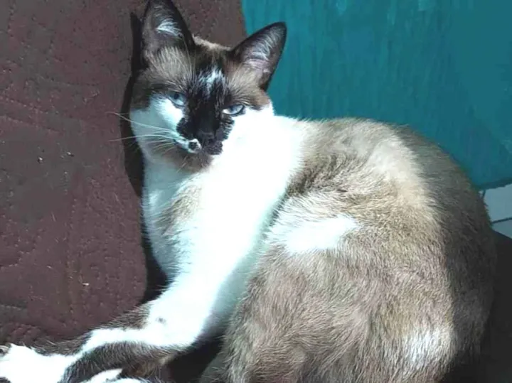 Essa é Sophia, de apenas 1 ano, já é castrada. Adotei ela recentemente, mas não consegue se adaptar ao apartamento. Já fugiu 3 vezes e quase morreu atropelada na última vez. Tentei muito ficar com ela, mas não está dando certo. Tenho medo dela fugir novamente, aqui ao lado é rodovia movimentada, essa pode ser a última vez.