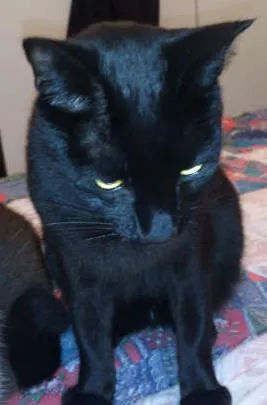 Gato preto magro, esguio, alto, com um rabo bem comprido, olhos verdes. Perdeu-se na Rua Alberto Hinoto Bento (antiga rua dos Japoneses - próx a Praça das Pedras).