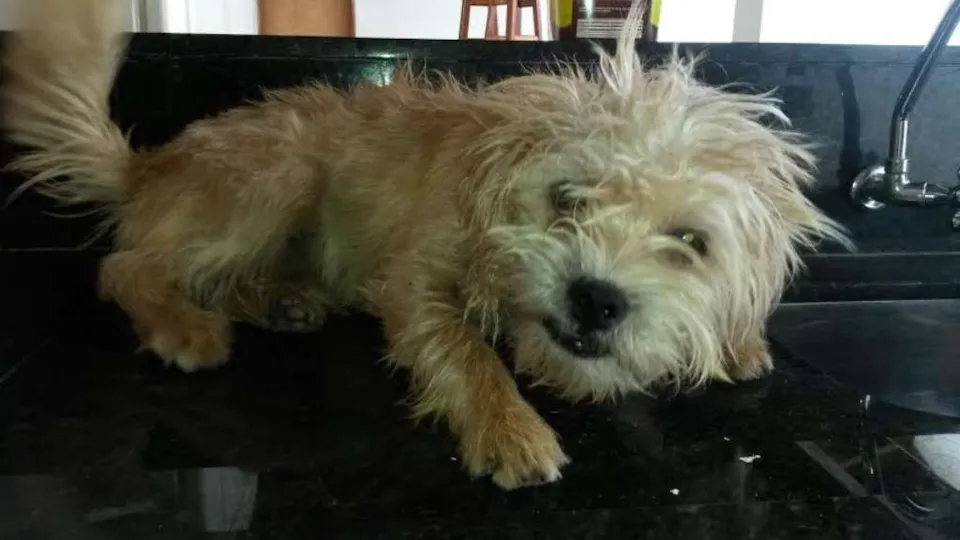 Cachorro tranquilo não da trabalho só esta bastante assustado por ter ficado 2 dias na rua em frente a casa da dona com fome frio e sede , foi abandonado pelos familiares da vizinha que faleceu, no mento esta sendo cuidado em minha casa.