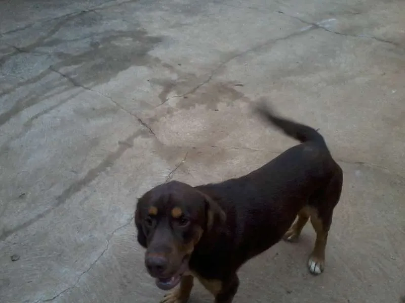 Um cahcorro de 01 ano e 03 meses, marron , que é filho dela com um cocker
