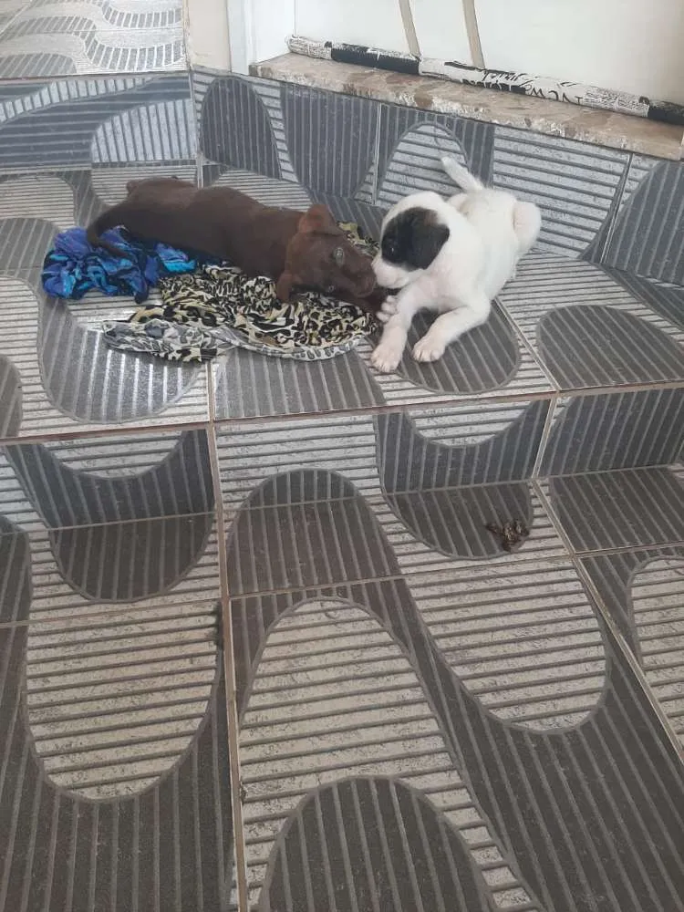 Estamos doando dois filhotes de Boxer com fila, um pelagem branca e outro marrom conforme fotos. Idade 3 meses.
