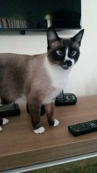 Gato macho de nome Bigode - aproximadamente 1 ano e 3 meses, mestiço de siamês.