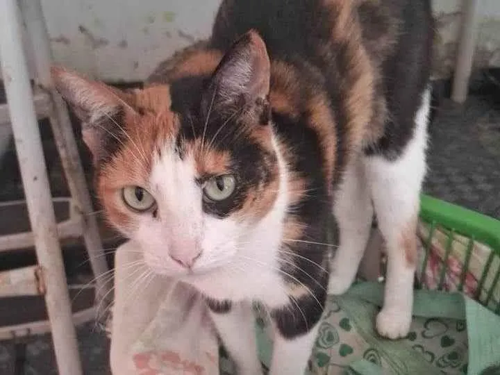 A gatinha tricolor é amável, foi resgatada Da rua , vítima de abandono . Gosta de ficar perto , usa bem a caixinha de areia , é saudável e uma excelente companhia. Para quem buscar um companheira fiel e amável , entre em contato . Em Hortolândia.