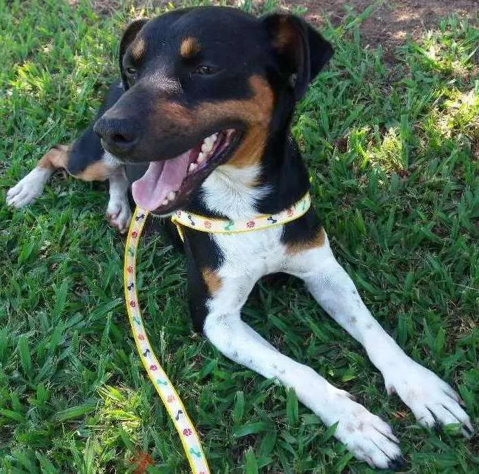 Chumbinho é um cachorro da raça fox paulistinha (não puro),porte pequeno a médio, pelagem curta, vacinado (possui carteirinha), não é castrado, é carinhoso e amoroso, bem atento, fez 2 meses de adestramento, gosta muito de brincar e cuida muito bem da casa. Porem, onde moro é cedido por empregador e tenho mais 5 cachorros e eles brigam de ciúmes, então o dono da casa mandou doar o cachorro e para não colocar em risco o emprego, precisamos doar ele para quem ama e cuida de cachorros.