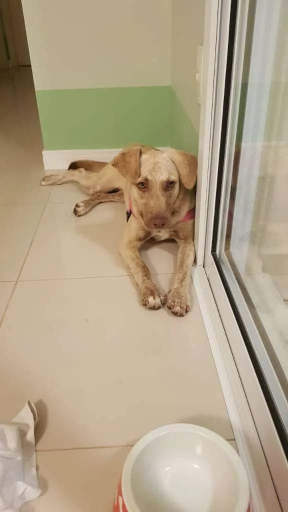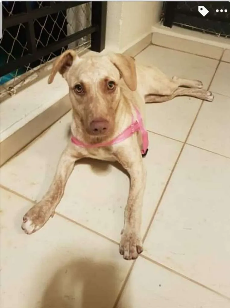 Acabei de achar esta menina na frente do parque mall e nas luzes do papai Noel. Ela tem cor bege clara e é nova e dócil demais. Estava sem coleira, desesperada, correndo pra tudo que é lado. Cadela novinha, não foi castrada, olhos claros...
