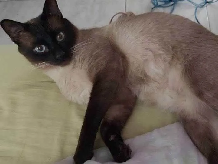 Animal siamês vira lata, castrado, usava uma coleira antipulga vermelha, atende pele nome de Vitinho/madruguinha.