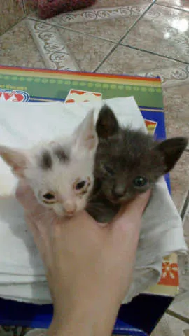 Encontrei duas gatinhas na rua perto da minha casa, devem ter no máximo 1 mes, infelizmente não posso ficar com elas porque já tenho 2 cachorras e como elas são filhotes precisam de muita atenção e carinho. Eu e meu merido trabalhamos e só fico com elas a tarde quando chego do serviço