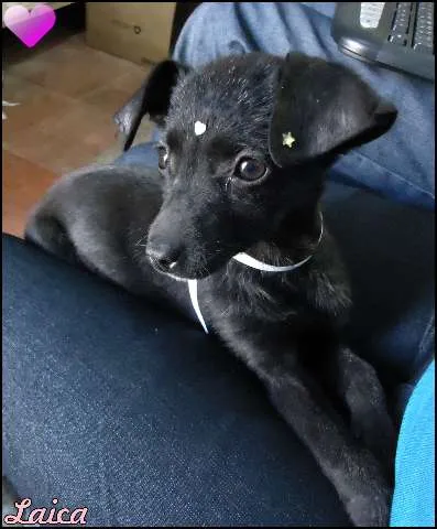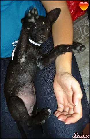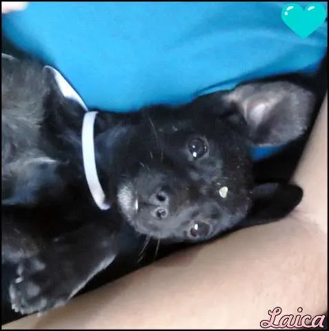 Linda cadelinha preta encontrada na rua, orelhinhas caídas, focinho fino, olhinhos castanhos escuros, tem no máximo 1 mês de vida (ela estava prestes a ser atropelada). Muito dócil, amigável, um pouco medrosa, alegre já gosta de brincar. Ama leite com ração, não tomou nenhuma vacina, está saudável, tomada banho (não tem nenhuma pulguinha nem carrapato). Adora um colo, um carinho e que falem com voz de bebê com ela. Infelizmente não se sabe onde está a mãe dela com seus irmãozinhos, foi achada sozinha na rua toda sujinha de barro, está dada banho e sem nenhuma pulga ou carrapato.
