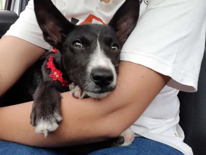 Fêmea??, SRD ??, aproximadamente 4/5 meses ??, provavelmente porte pequeno ou médio.?? Uma linda neném muito dócil, carinhosa e agradecida <3