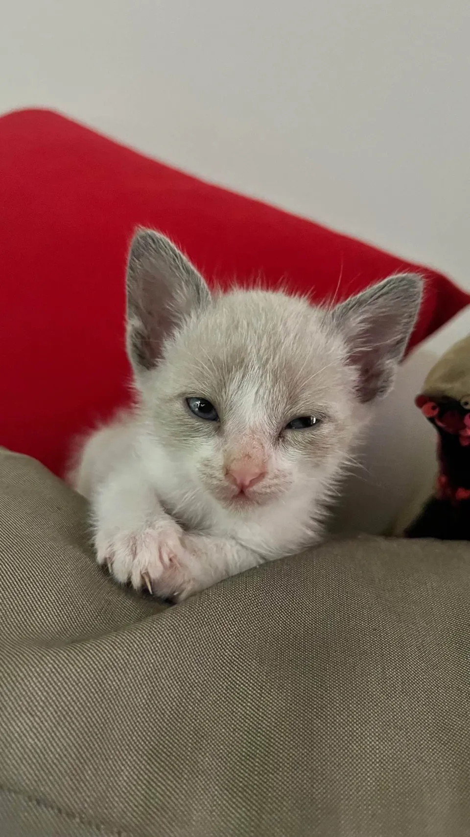 Fui resgatada junto com meus 3 irmãozinhos em uma madeireira, ainda mamando. Acho que minha mãezinha estava querendo nos proteger e nos escondeu em um caixote de retalhos de madeiras. Por pouco não fomos esmagados pelos entulhos.