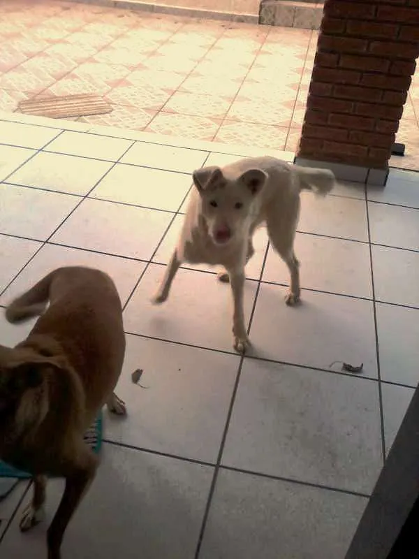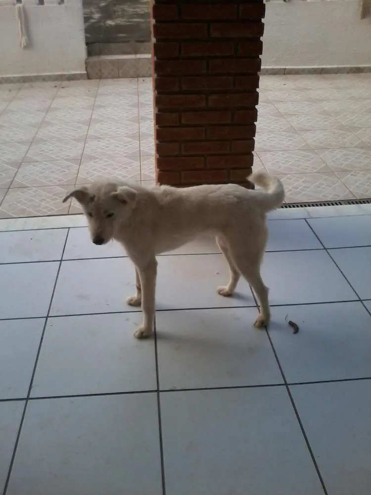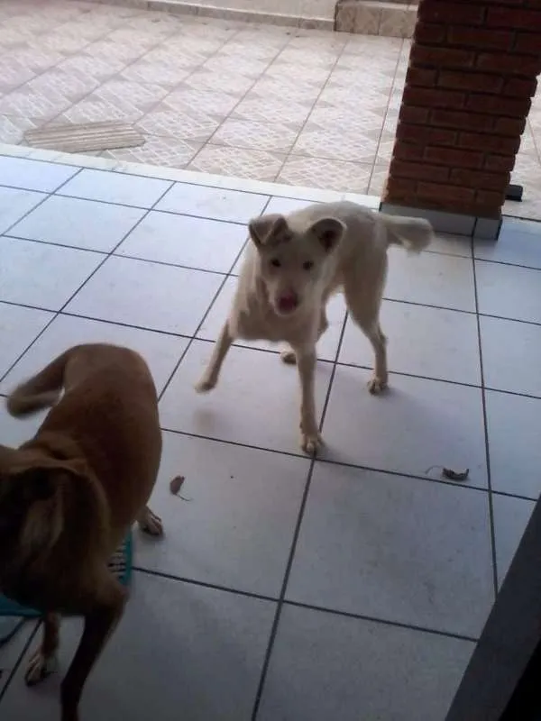 Uma cachorra é branca e se chama Branca, é peludinha, amorosa demais, nunca mordeu ninguém, adora correr, e passear.