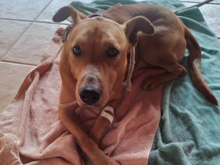 Não sabemos o nome certo, estamos chamando de Caramelo, ele apareceu com a pata muito infeccionada provavelmente por uma mordida, levei ao veterinário já está boa e já fez a castração também. Ele é super dócil, carinhoso e gosta de carinho, obedece a comandos, não faz as necessidades em casa. Ele tem uma coleira marrom de couro.