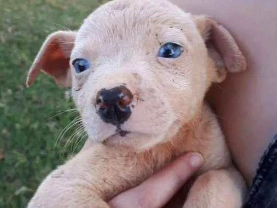 Filhote fêmea sem vacinação e castração. Possui olhos azuis e pelagem curta e branca. É brincalhona e amorosa.