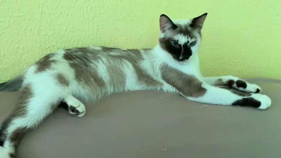Gata mesclada de branco, cinza claro e cinza escuro. Linda! Dócil! Tem 3 anos e sempre ficou dentro de casa.