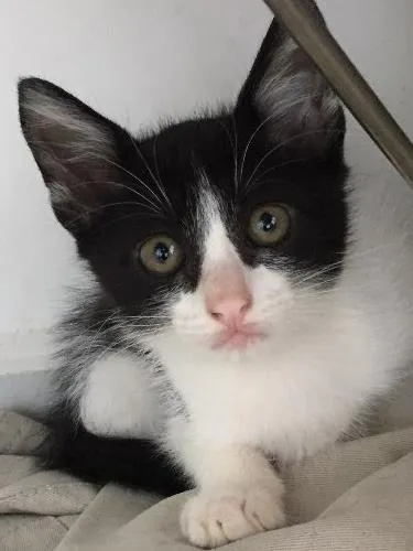 Macho super dócil, brincalhão bicolor (preto e branco). A ninhada foi abandonada, cuidei até agora, mas ele precisa de um novo lar, pois tenho outros animais. Já está vermifugado e com Frontline (livre de pulgas e carrapatos). Nascido em Dezembro de 2015.