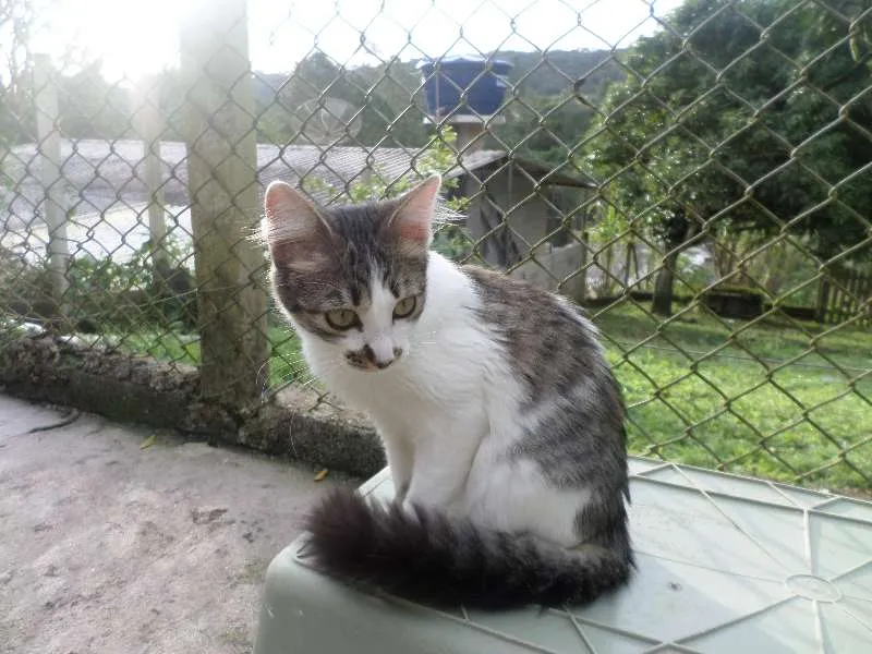 A Nicolle foi encontrada na calçada de uma farmácia, em um domingo de frio, chorando muito. Magrinha e com os olhinhos muito ruins... Levamos para o abrigo, cuidamos, ela sarou foi castrada, vacinada, e hoje esta para doação para pessoas que gostem de gatos e que morem em aptos telados, e com segurança. Se for casa o espaço onde ela vá ficar também precisa ser telado e com portões onde ela não tenha acesso a rua.