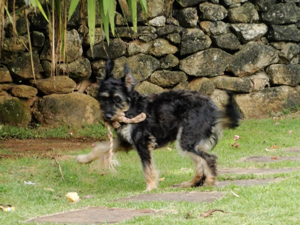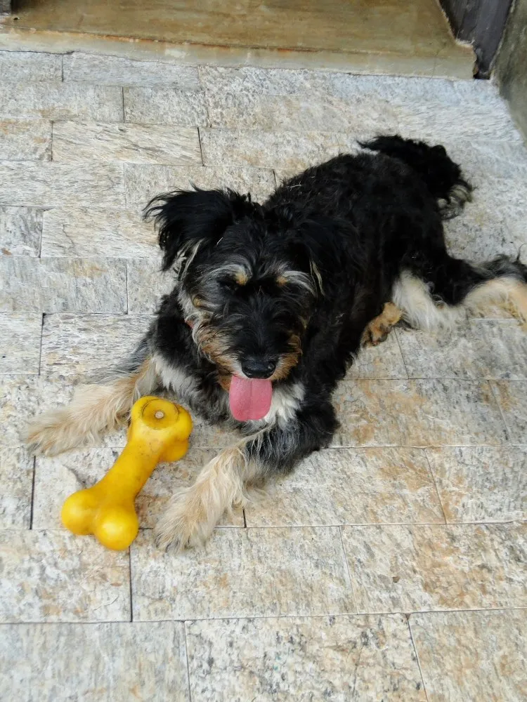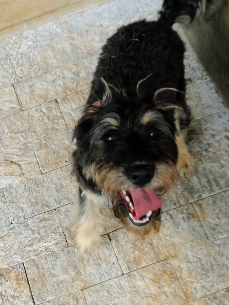 Tem pelo longo e ondulado, é preta em cima com as patas e focinho (barba) marrom ( tem uma "sobrancelha" marrom também), ela é dócil e bagunçeira. Tem microchip do centro de controle de zoonoses (CCZ). Esta desaparecida desde 16/01/2016