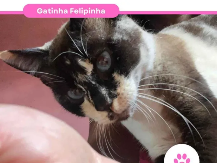 Felipinha é uma gatinha cheia de charme, com um visual único: ela tem o pelo todo branquinho com manchinhas cinzas e marrons que deixam ela ainda mais especial e linda! ??