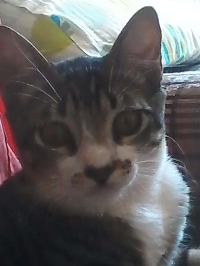 Macho castrado cinza e listras petras pescoço e ponta das patinhas brancas fugiu na passagem do ano durante os fogos da avenida Joquei Clube 924 BR 153 zona sul uma oficina de refrigeração de transporte a pontinha do rabinho é quebradinha. Att: Dorali